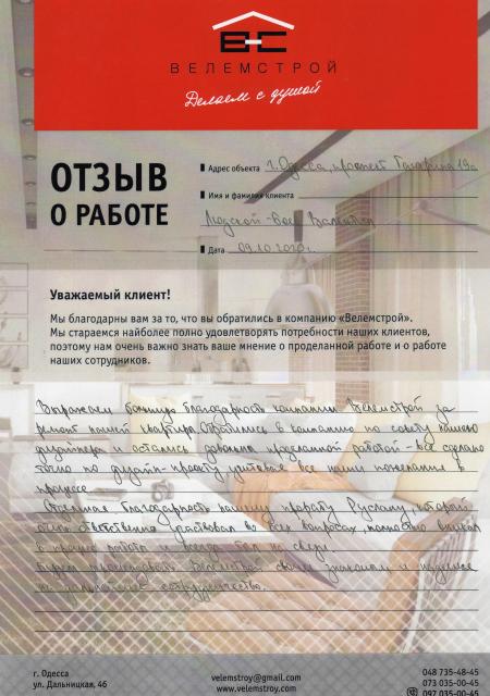 Ремонт элитного жилья в Одессе от Velemstroy